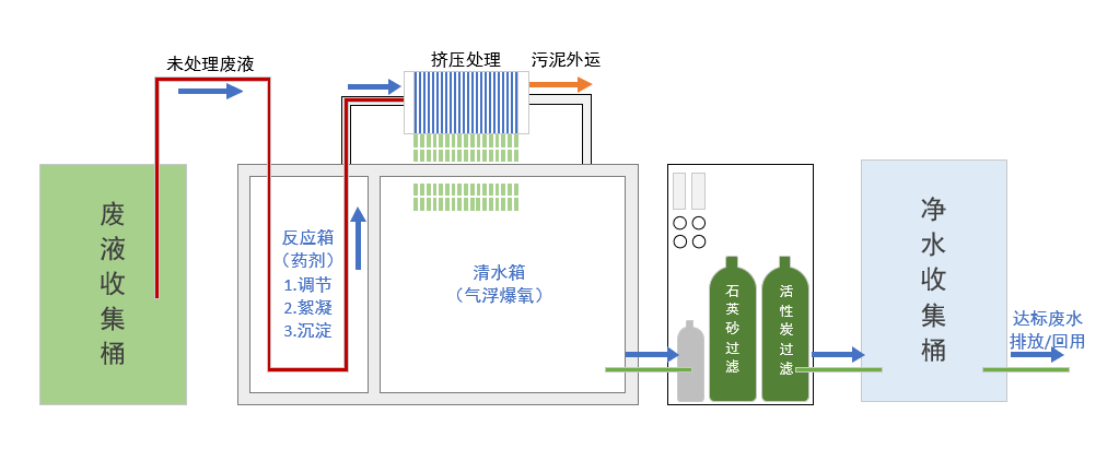 ?廢水處理范圍廣泛,處理效果明顯,清水回用,殘留少量固體廢渣。